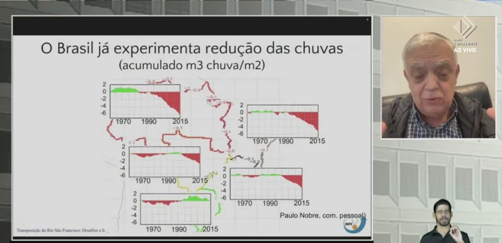 Palestrantes – Entre os palestrantes, destacaram-se o secretário Nacional de Segurança Hídrica do Ministério da Integração e do Desenvolvimento Regional, Giuseppe Serra Seca Vieira; o pesquisador do Instituto de Pesquisa Econômica Aplicada (IPEA), César Nunes de Castro; o representante da Agência Nacional de Águas e Saneamento Básico (ANA), Bruno Rebouças; o cientista do Centro de Previsão de Tempo e Estudos Climáticos do INPE, Paulo Nobre; e o diretor da Companhia de Desenvolvimento dos Vales do São Francisco e do Parnaíba (Codevasf), José Vivaldo Mendonça.