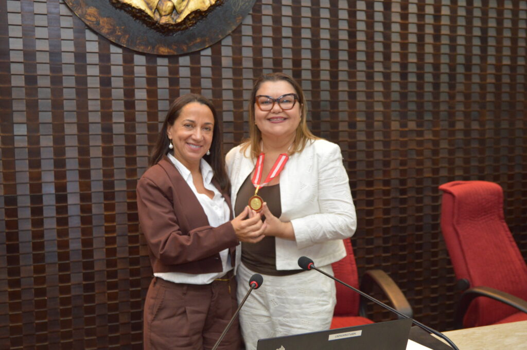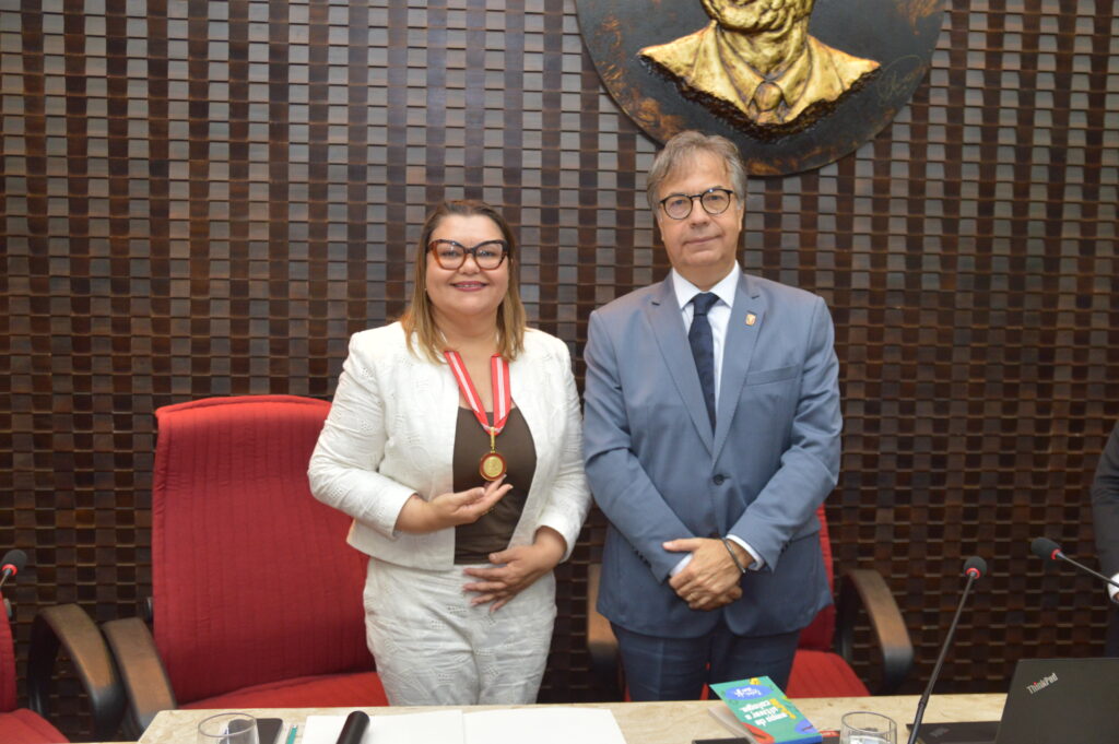 A procuradora do Ministério Público Federal, Janaína Andrade de Sousa, foi agraciada com a concessão da “Medalha Cunha Pedrosa”, maior honraria do Tribunal de Contas do Estado, conferida a personalidades e instituições que prestaram relevantes serviços à Administração Pública e que tenham se destacado em áreas jurídicas, contábeis ou sociais. O ato de entrega aconteceu nesta quarta-feira (01), em sessão solene do Tribunal Pleno, conduzida pelo presidente da Corte, conselheiro Fábio Nogueira, para quem, a homenagem do Tribunal é o reconhecimento ao trabalho realizado pela procuradora, sua história e sua digna conduta à frente das causas sociais.