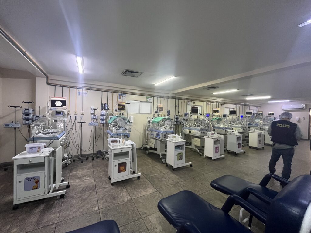 Resultados – Dos 20 hospitais fiscalizados, 18 unidades estão em funcionamento, 1 em obras (Hospital Distrital de Itaporanga Dr. José Gomes da Silva) e 1 interditada pelo Conselho Regional de Medicina (Hospital Materno Infantil João Marsicano, em Bayeux); 15 maternidades dispõem de 91 leitos de UTI adulto e 74 de UTI neonatal; 16 unidades possuem ambulâncias próprias e todas contam com gerador elétrico e sala de acolhimento da parturiente; nenhuma unidade possui sistema de detecção e combate a incêndio, e 13 não dispõem de laudo do Corpo de Bombeiros; 12 unidades têm lavanderia própria. Em todas as maternidades os recém-nascidos são identificados com pulseiras, e apenas uma unidade (em Cajazeiras) apresentava superlotação no momento da visita.
